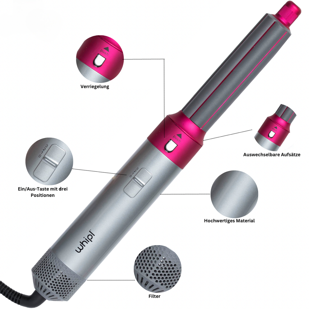 The Whipl™ AirStyler does the whole thing work for you! He switches from one mode to another, be it that Dry, Smoothing, Curls magic or Waves create by using the 5 different attachments with just one Press a button change - Awesome, right?
